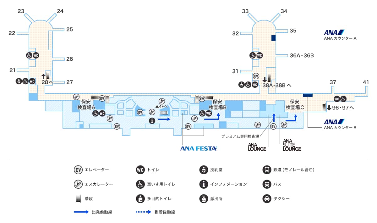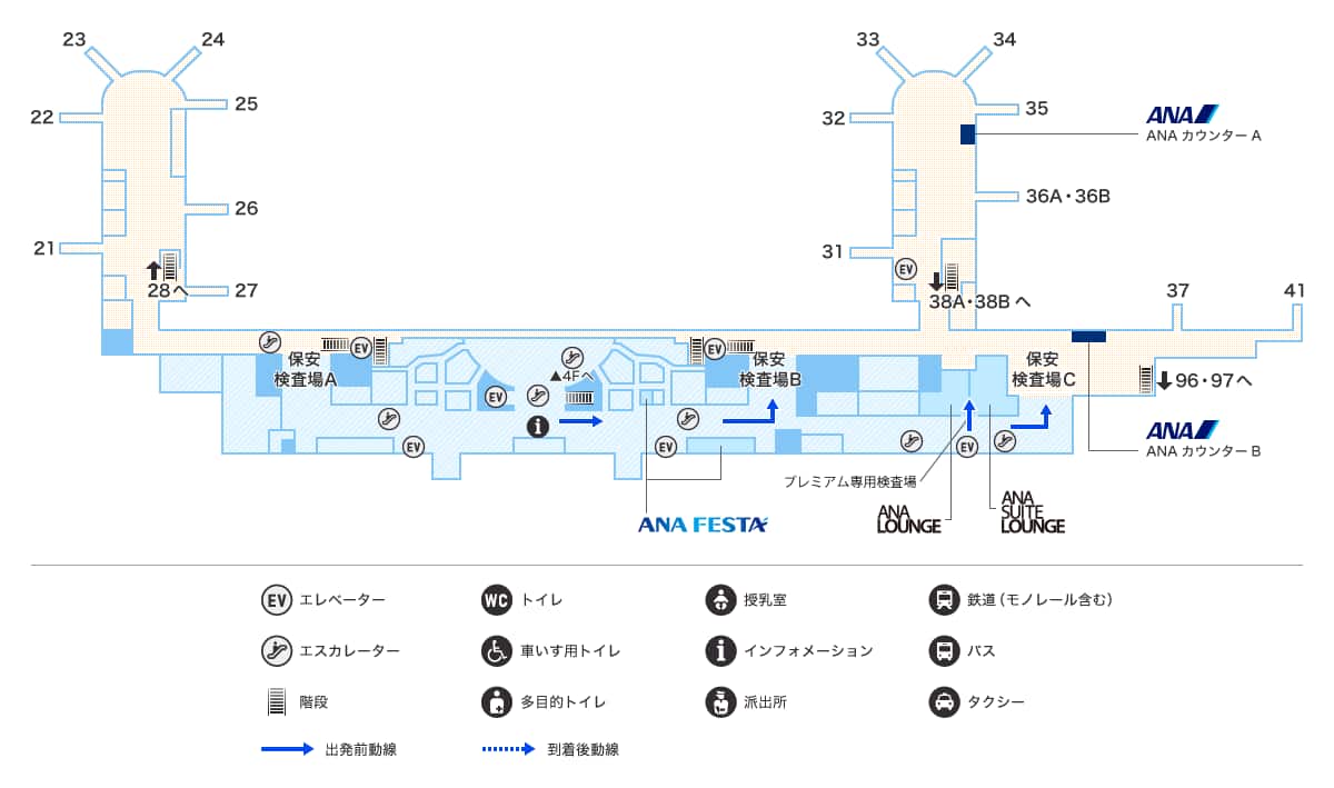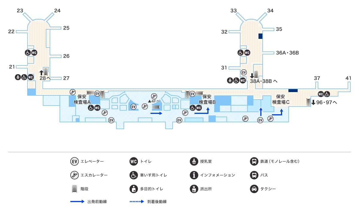 現在の待ち時間は、保安検査場の混雑状況からご確認ください。