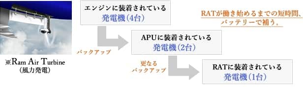前述の通り、ボーイング787型機の通常の電力源はエンジンの発電機です。
