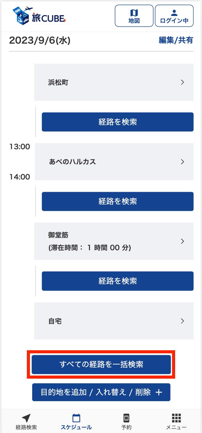 「スケジュールに追加」のアイコンからスケジュールを保存し、出張計画は完了。