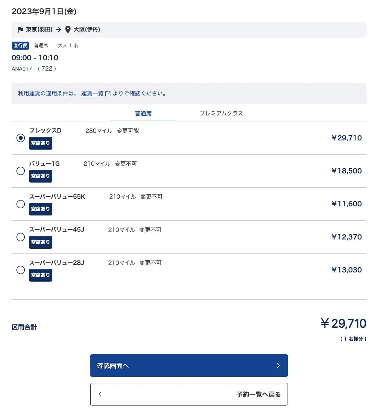 ANA便は予約可能な運賃や空席状況をご案内(その他の航空会社は普通運賃を表示)