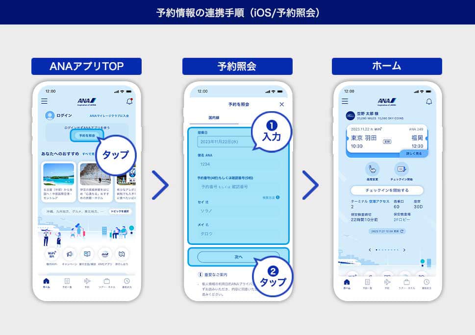 iPhone(ANAマイレージクラブお客様番号(10桁)/Webパスワードで予約検索)