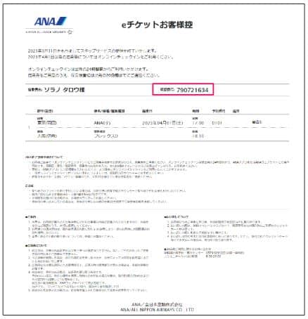オンラインチェックイン・空港でのチェックイン・予約の変更・払い戻しの際に必要な番号(認証コード)になりますので、予約番号とともにお控えいただき、管理には十分ご注意ください。