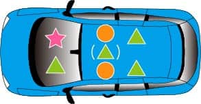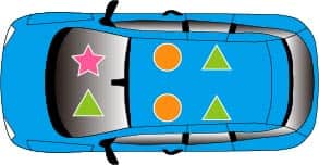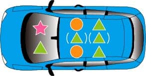 例)5名定員の車種にチャイルドシートを2台取り付けた場合、6歳以上の乗車可能人数は2名様(運転者含む)となります。