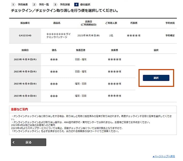 オンラインチェックインおよび取り消し操作は、各航空会社予約・案内センター・ダイナミックパッケージデスクでは承れません。お客様ご自身でお手続きください。