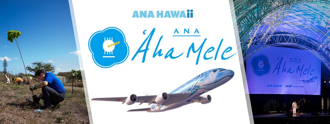 ANAは、音楽や文化交流及び環境保全を目的としたイベントとして「ANA ʻAha Mele」を2025年11月19日-22日にアメリカ合衆国ハワイ州、ホノルル市で開催します。2019年から続くこの活動は、2022年「ANA ʻAha Mele」としてのリニューアルを経て、今年で5回目の開催となります。「ʻAha Mele」とは、ハワイの言葉で「音楽会」という意味です。地元アーティストとの共演、音楽を通してハワイの人々とのつながりを紡ぎ、文化や環境を守っていきたいというANAの想いを込め、地元に根付いたイベントとなることを目指しています。世界最大の旅客機 エアバスA380型機「FLYING HONU」による日本=ホノルル間の運航により、両都市の交流人口増加に貢献するとともに、ハワイの文化継承や子どもたちの教育、DEI、植樹などの環境保全にも取り組んでまいります。