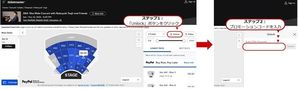 現地での Box Office支払いの場合、発券手数料$1.00が加算されます。