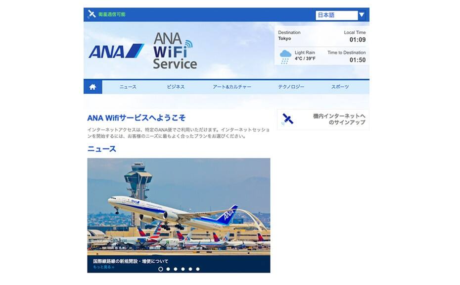 • 衛星通信を利用して提供されるサービスであるため、飛行ルートや気象状況により一部エリアでは、通信が不安定になったり中断する場合がございます。