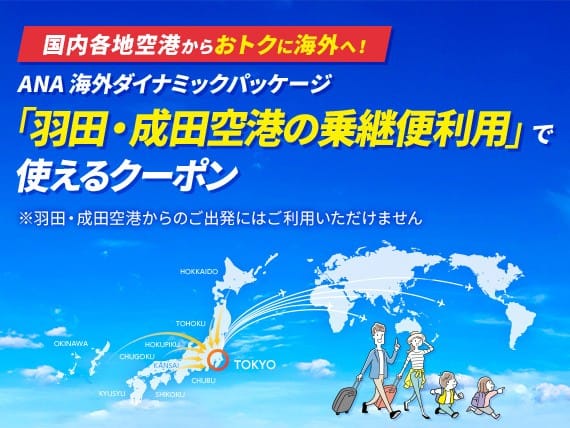 ANA 海外ダイナミックパッケージ「羽田・成田空港の乗継便利用」で使えるクーポン