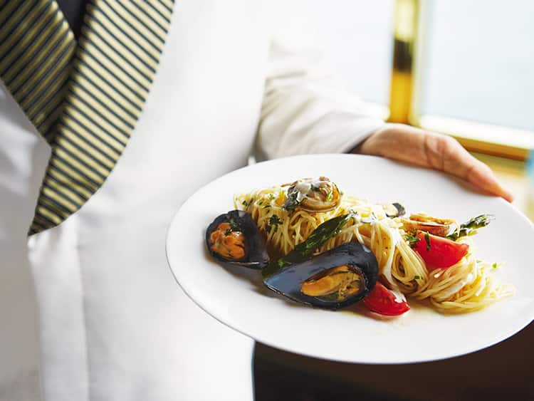 アラカルトの朝食、昼食、夕食を上質のサービスの中でお楽しみください。船内には気軽にお楽しみいただけるビュッフェレストランも併設しています。
