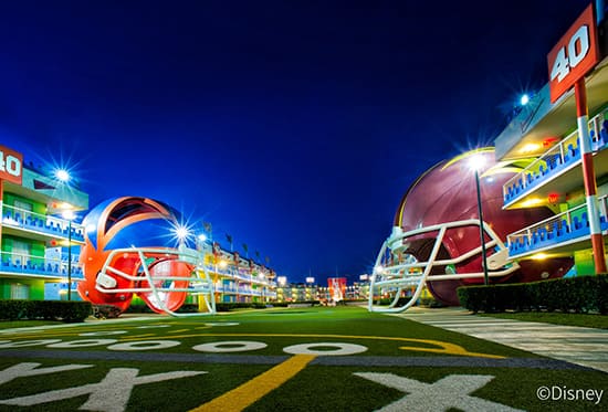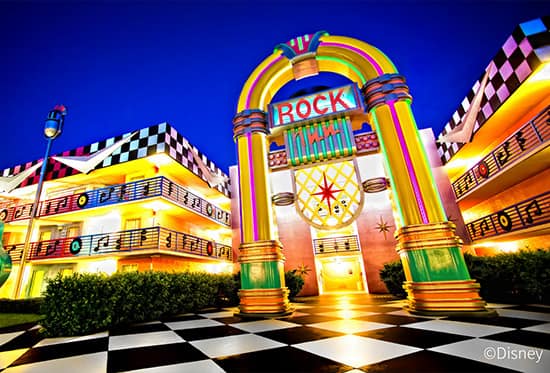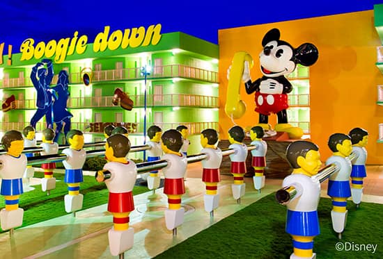 20世紀のポップカルチャーをテーマとしたディズニーの世界を楽しめるファミリー向けのホテルです。1900年代から90年代までの流行を象徴する巨大なオブジェが点在し、ノスタルジックな雰囲気を満喫できます。