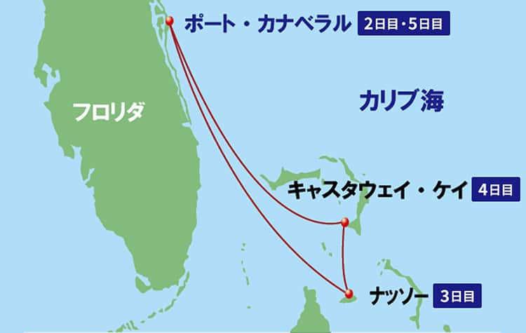 | 18:00 | ナッソー出港 | 船中泊 ディズニー・ウィッシュ |