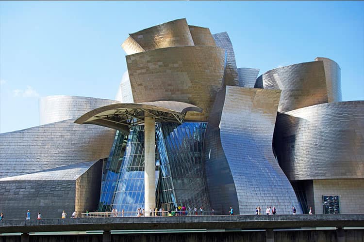 スペインのバスク自治州ビルバオのシンボル、フランク・O・ゲーリーによって設計されたチタンの外壁、複雑な曲線を用いた唯一無二の構造は必見です。ジェフ・クーンズのパピーに会えるのもお楽しみです。