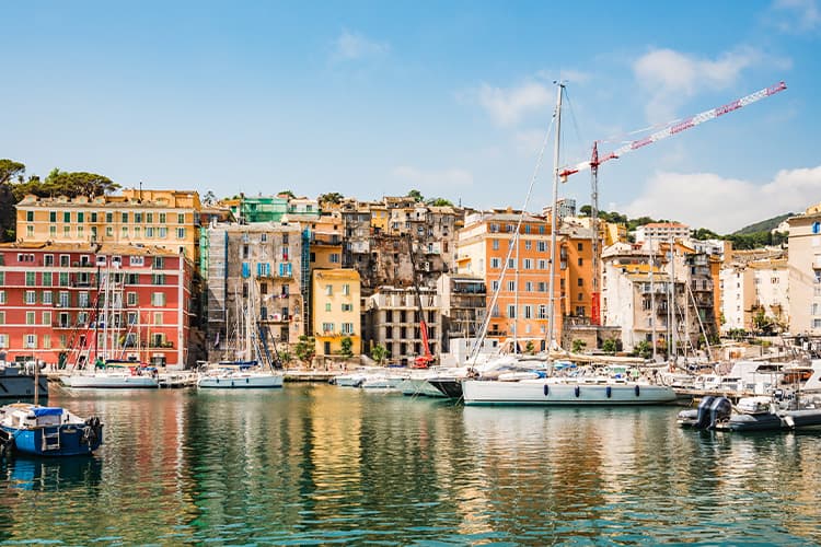 コルシカ島北部の港町バスティアは、地中海の陽光が降り注ぐ美しい街。カラフルな建物が並ぶ旧市街や、港を見下ろす教会など、フランスとイタリアの魅力が溶け合うエキゾチックな雰囲気が魅力です。