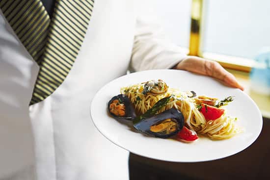 アラカルトの朝食、昼食、夕食を上質のサービスの中でお楽しみください。船内には気軽にお楽しみいただけるビュッフェレストランも併設しています。
