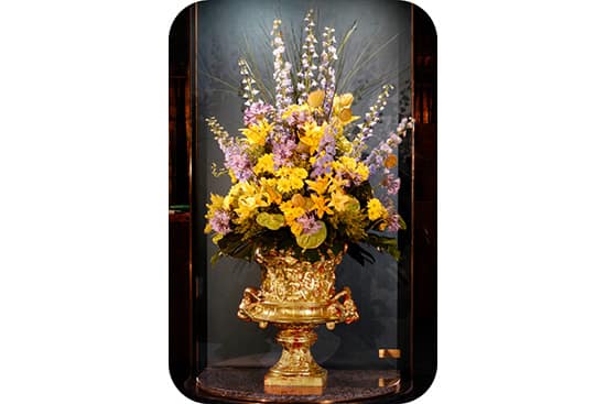 常に本物を目指すホーランドアメリカでは船内のいたるところで生花の装飾を見かけます。アート作品がギャラリーにさりげなく飾られているのも粋です。