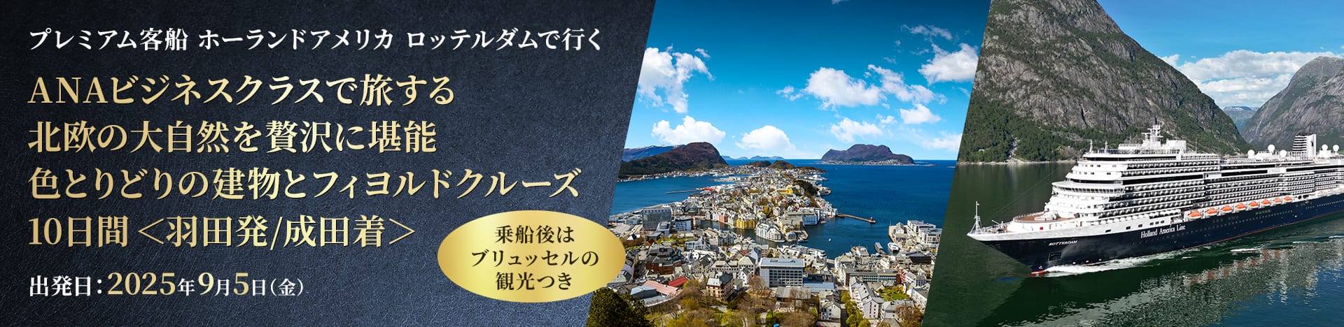 ワンランク上のプレミアム客船で雄大な景色とかわいらしい港町が楽しめる北欧クルーズ旅。往復はANAビジネスクラスにて優雅に空の旅を満喫、船内ではベランダ付きの客室で景色を堪能しながら洋上の旅をお楽しみいただけます。もちろん日本から日本まで添乗員が同行するので安心です。