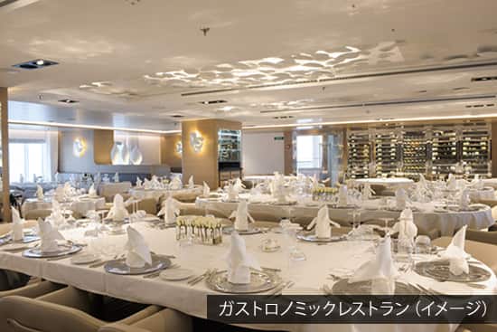 フランス発のデザインやアメニティーが船内をスタイリッシュに演出します。アラン・デュカス氏の持つ「デュカス・コンセイル」の監修を受けた、フランス船ならではのグルメもお楽しみください。