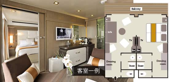 料金に含まれるもの:クルーズ代金 / 港湾諸税 / 船内でのすべての食事と飲物(シャンパン、ワイン、焼酎、ビール、ソフトドリンク)ミネラルウオーター / 各寄港地での基本の観光ツアー / オ-プンバーのドリンク / ルームサービス(24時間) / Wi-Fi利用(無制限) / 客室オンデマンドテレビ利用など