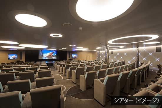 250人収容のシアターでは、メインショーやライブ演奏をお楽しみください。フランスのブランド「ソティス」提携のスパや、「ケラスターゼ」のヘアサロンでリフレッシュも。