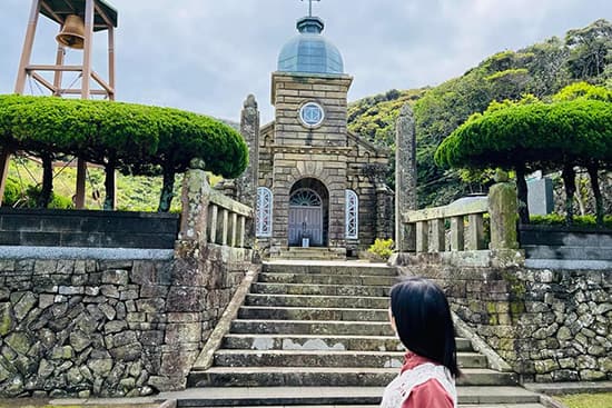点在する教会は、弾圧の時代から信仰を守ってきたキリスト教徒たちが建てたもの。頭ケ島の集落は世界文化遺産に登録。