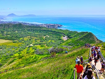 初心者でも登りやすいダイヤモンドヘッド。ワイキキのパノラマや朝焼けなど、頂上からの絶景は早起きしてでも見る価値あり。