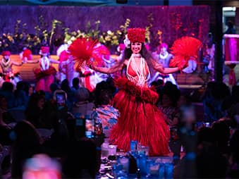 旅の夜は、ハワイ伝統の宴会(ルアウ)で、美味しい料理を堪能。心に響くフラダンスに酔いしれ、ポリネシアの文化を肌で感じませんか。