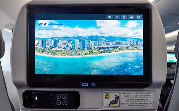 長時間を過ごす機内でもお子様が楽しめる映画・音楽のほか、ゲームなど、機内エンターテインメントが充実!