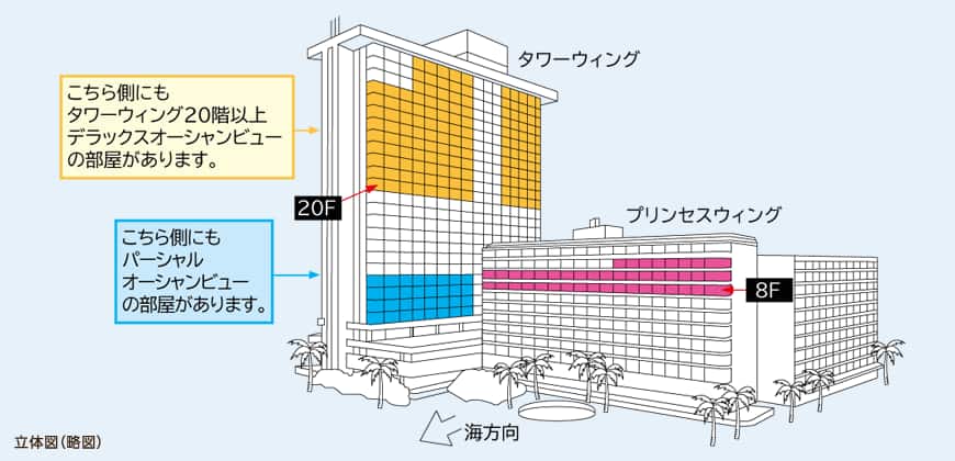 | オーシャンビュー 朝食付き ベッド2台 ラナイなし バスタブなし | 17~23㎡ | 1~2名 |