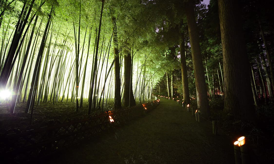 偕楽園は「陰」と「陽」の世界を楽しむように設計されています。表門から一の木戸を抜けると、孟宗竹林、大杉森、クマザサが茂る静かで落ち着いた「陰の世界」が広がります。その先へ進んでいくと好文亭が現れ、見晴らしがよく開かれた「陽の世界」が現れます。「陰」と「陽」の異なる世界観の調和を味わうことが偕楽園で過ごすポイントです。