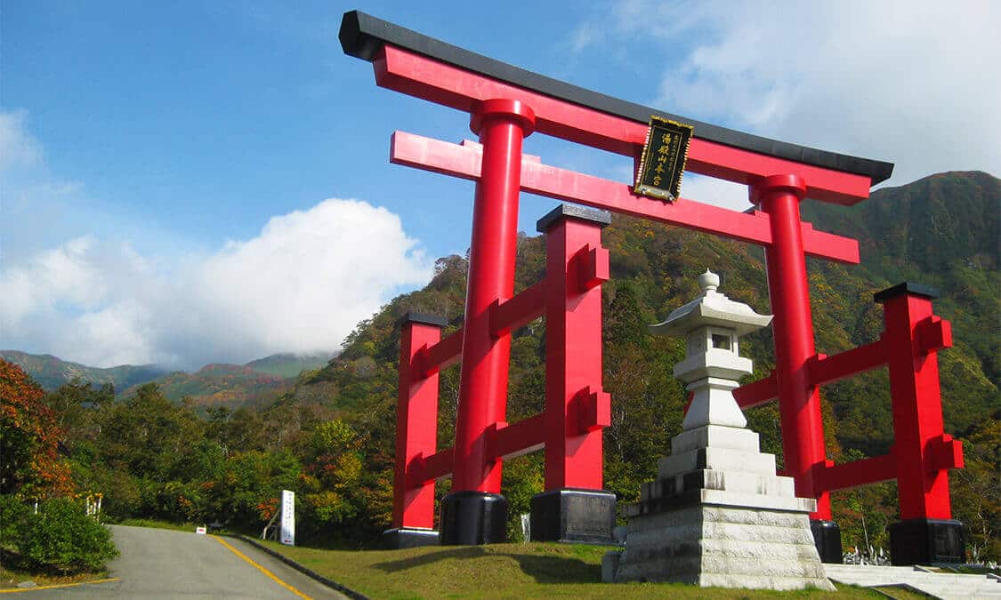 湯殿山は標高1,504メートル、山にこもり厳しい修行を行う山岳信仰(修験道)の霊山として名高い山です。月山・羽黒山と合わせて出羽三山と呼ばれ、月山・羽黒山で修行をした行者がここで仏の境地に至るとされています。湯殿山の北側の中腹の峡谷には、湯殿山神社本宮があります。