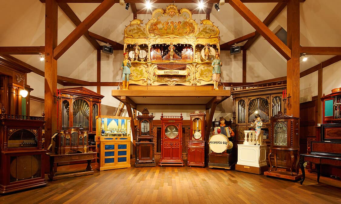 萌木の村内のアンティークオルゴールと自動演奏楽器の展示施設です。趣のある自動演奏楽器の音色は過ぎ去った時の流れを感じさせてくれます。大迫力の自動演奏楽器の演奏や音楽家のコンサート、繊細な動きとからくりを楽しめるオートマタ(自動人形)自動演奏楽器の音色シアターなど、さまざまな音楽パフォーマンスが訪れる人々を魅了します。館内ショップでお気に入りの音色を探すのも楽しみです。