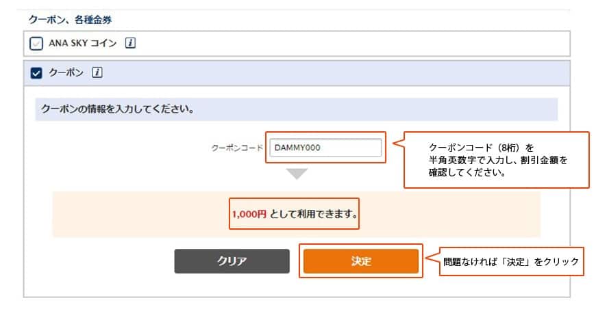 決済またはお支払い時は、クーポン代金を差し引いた金額でのお支払いになります。