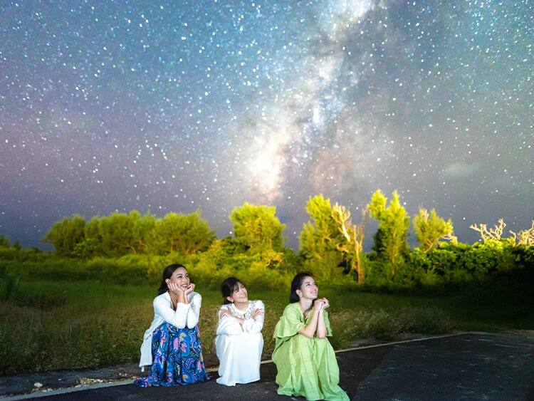 宮古島では、スターゲイジング「星空観測」ツアーで美しい来間島の星空を満喫。宮古島初のアメリカハワイ州ハワイ島公認のネイチャーガイドが、レーザーポインターと天体望遠鏡を使用して、その日の夜に見える星空をわかりやすく解説します。