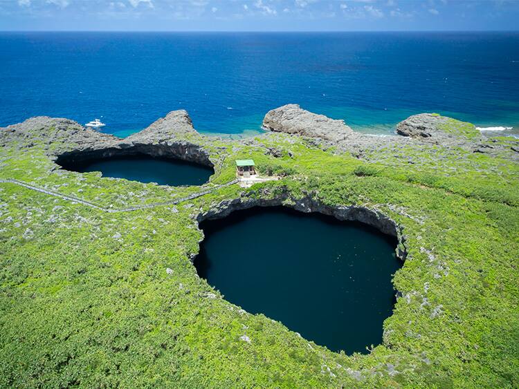 ユナイマタ(人魚)伝説など、昔からいくつかの神話がある神秘的な池です。池は水中でつながっていますが、上から見ると天然の石橋によって2つの池のように見え、龍の目玉とも言われています。底は約10mの洞窟で外海とつながっており、ダイビングポイントとしても有名。淡水と海水の水質、温度差が作り出すサーモクラインと呼ばれる水中の現象は、刻々とその色を変化させる不思議な光景です。