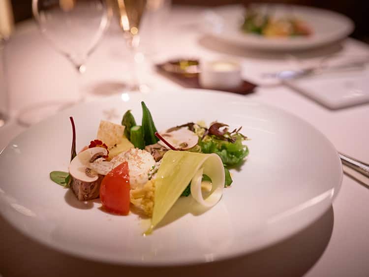 「TRAIN SUITE 四季島」の総料理長 池内 英治によるフレンチディナーをお楽しみいただきます。その土地ならではの食材や文化を大切にしたストーリー性のある料理を創り上げていきます。