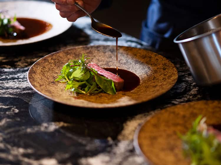大きく広がるライブキッチンで腕を振るうシェフたちに直接オーダーしていただく「フリーオーダースタイル」で、シェフたちの手さばきやその会話もお楽しみください。ビュッフェ形式の食事となります。