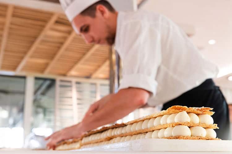 パティシエが乗船し、お客様には最後のデザートまで極上の時間を演出します。もちろん、フレンチスタイルでチーズの種類も豊富です。