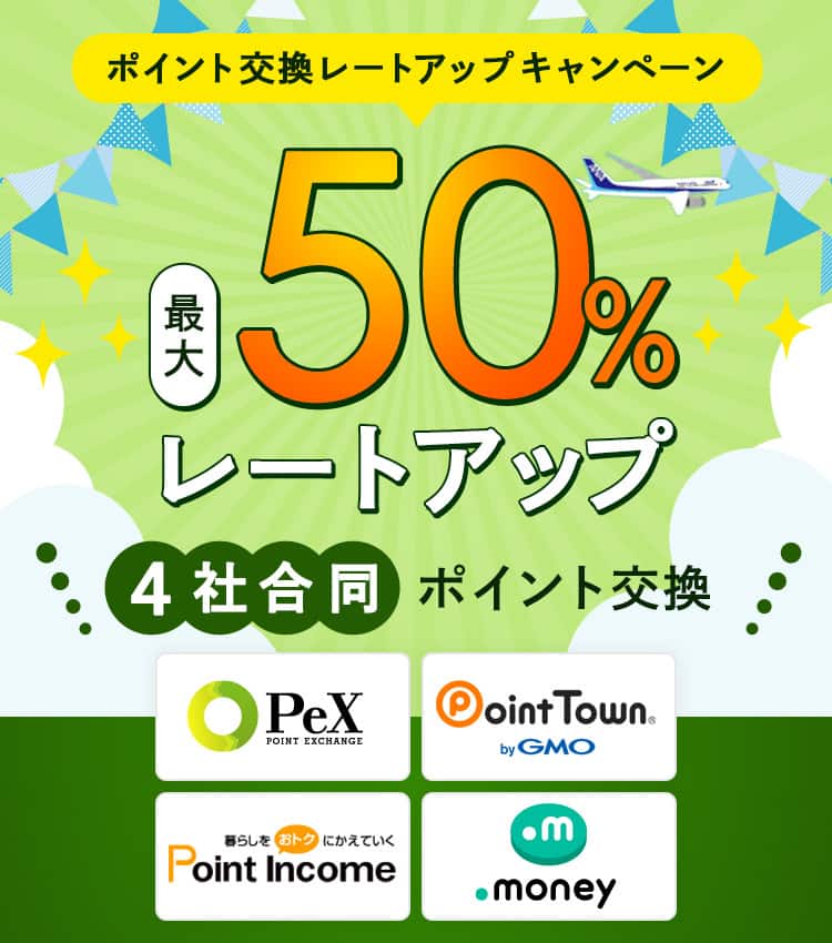 期間中、下記のポイントからマイルへの交換が最大50%レートアップにて可能です。
