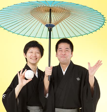 春本小助(平成4年、福井県出身・右)と鏡味小時(昭和61年、北海道出身・左)による太神楽のコンビ。共に国立劇場太神楽研修修了後、鏡味勇二郎に入門し、平成27年にコンビ「丸一小助・小時」を結成した。二人ならではのダイナミックな技が魅力。今回、会場のみの特典として出演。