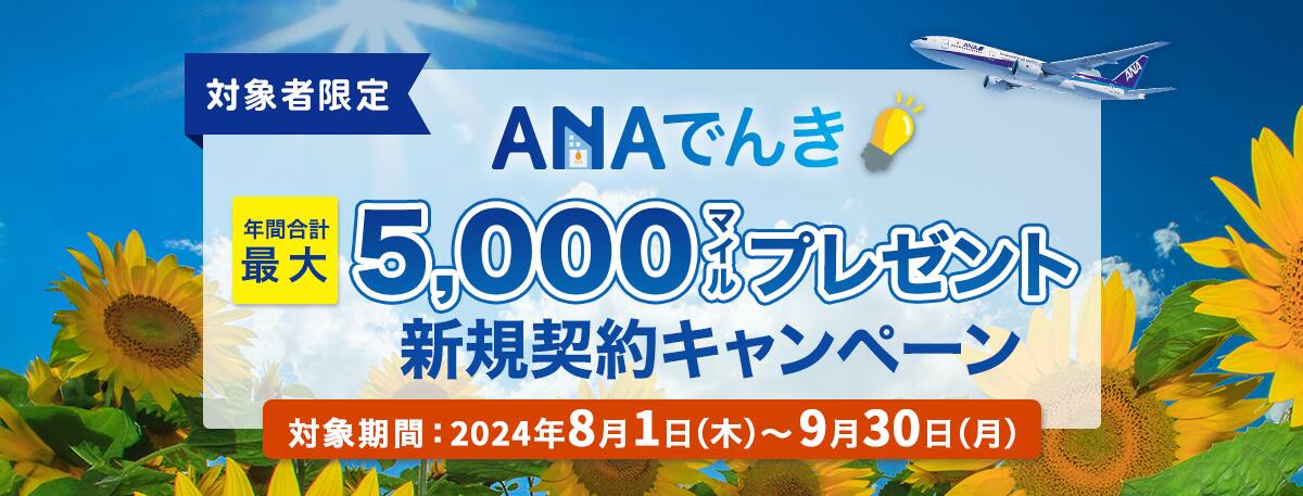 「対象のお客様限定」ANAでんき新規ご契約で400マイルプレゼント