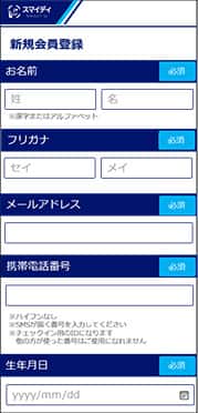 初回登録時にSMS認証を行います。ご登録いただく電話番号に誤りがないか、今一度ご確認ください。