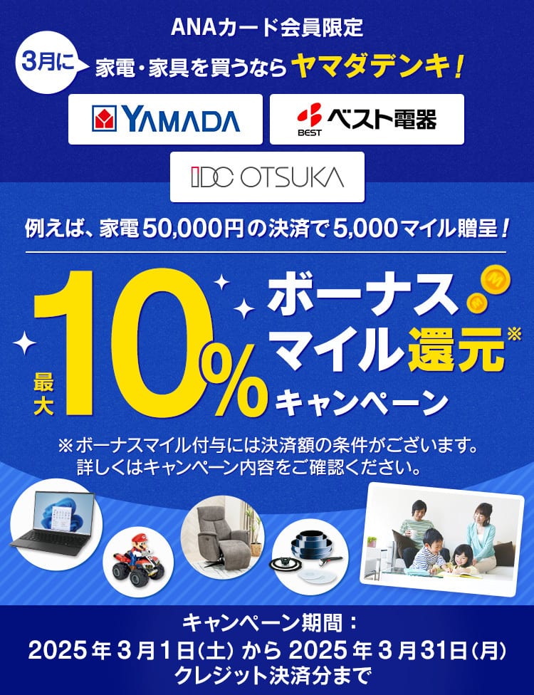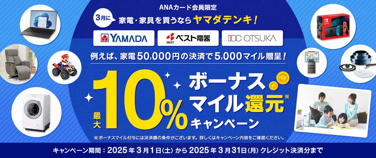 「ヤマダLABI ANAマイレージクラブカード」はANAカードではございません。「ヤマダLABI ANAマイレージクラブカード」でご決済いただいてもANAカードマイルプラス、ボーナスマイルの対象にはなりません。