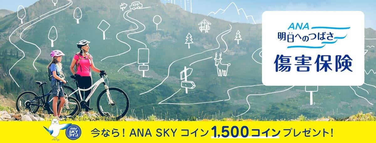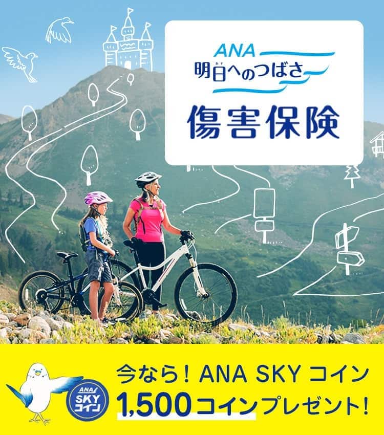 期間中、ANAの保険「明日へのつばさ」傷害保険にご契約いただいた場合、ANA SKY コインが1,500コイン(通常の3倍)貯まります。