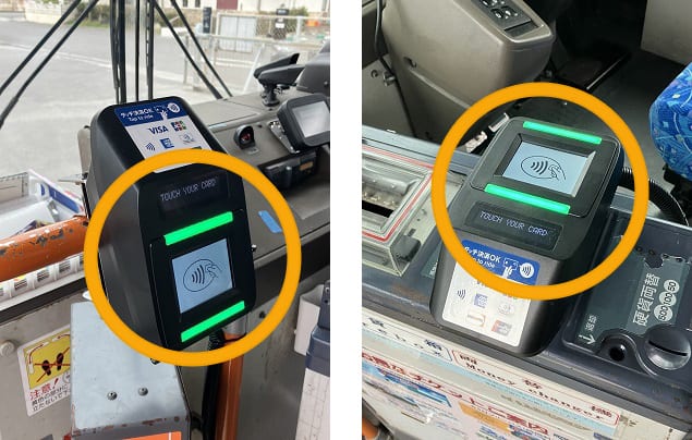乗降車時それぞれ、車内に設置された専用機器にスマートフォンをかざしていただくことでご利用いただけます。