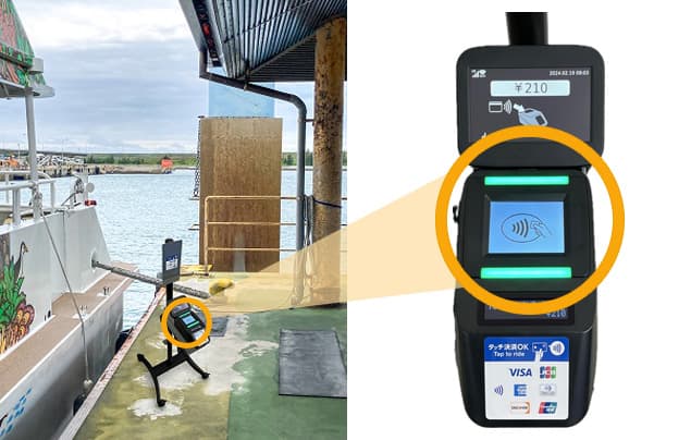 乗船時に、桟橋に設置された専用機器にスマートフォンをかざしていただくことでご利用いただけます。