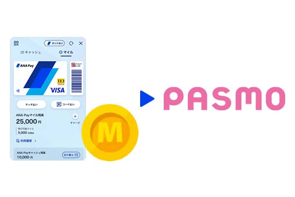 ANA Payキャッシュ口座からPASMOへのチャージ時のみマイルが積算されます