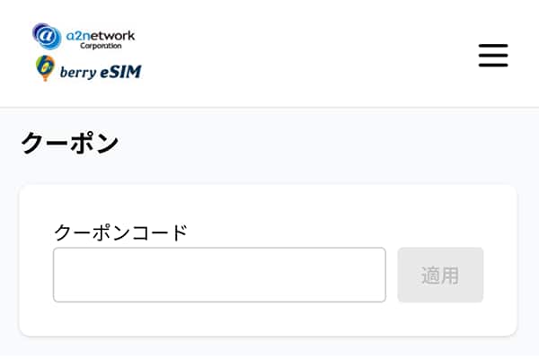 クーポンはa2network株式会社(サービス名:ベリーeSIM)から配信されます。