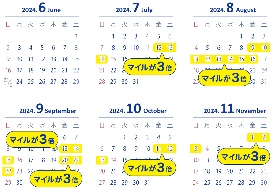 | 5名以上 | 6,000マイル | 18,000マイル |