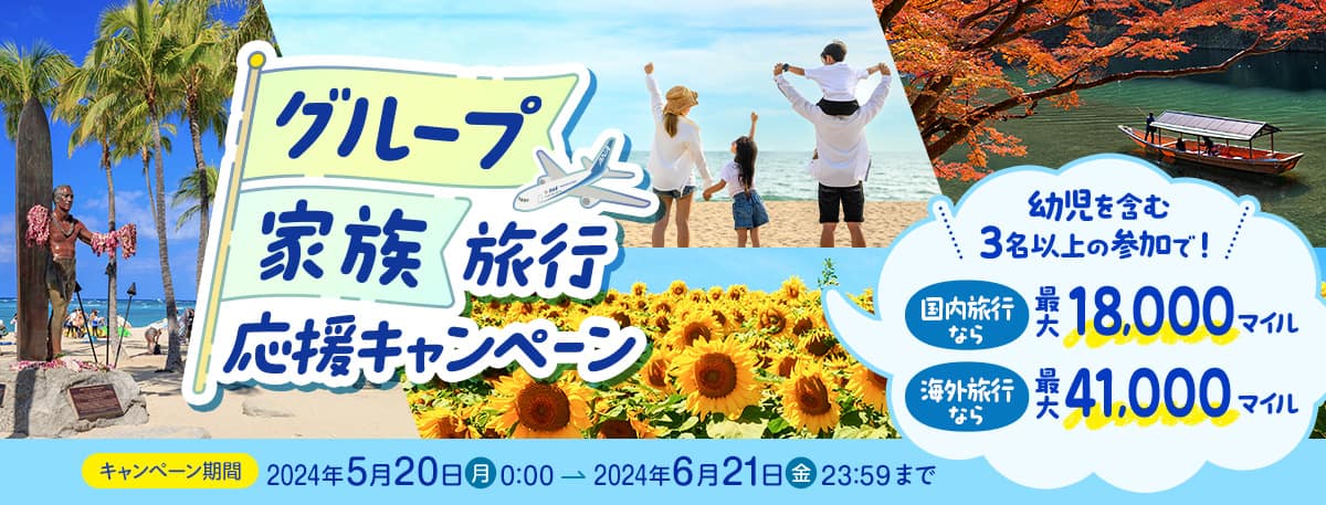 対象予約期間・対象出発期間に、ご予約・ご出発いただいたグループ代表のお客様が対象となります。
