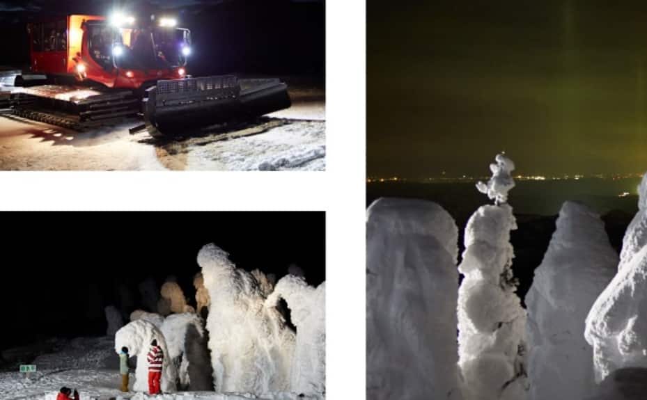 ライトアップされた幻想的な樹氷を間近で楽しめる特別なナイトツアー。満天の星空と雪原の静寂に包まれながら、自然が織りなす冬の芸術を体感できます。